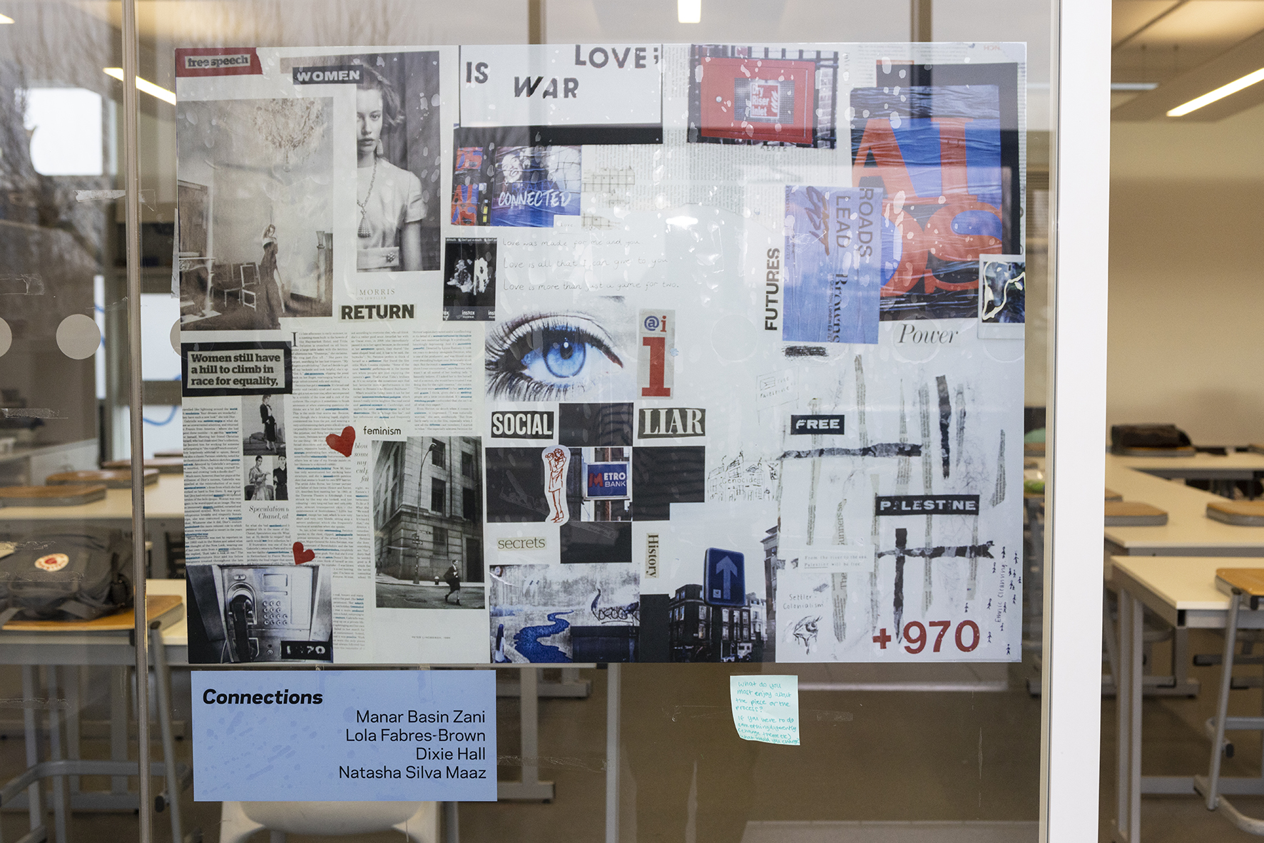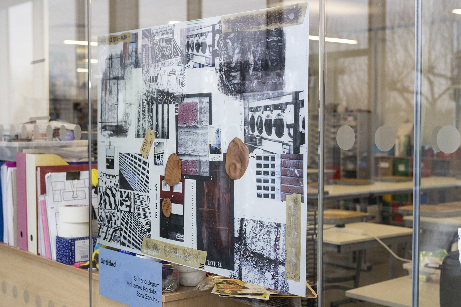 The project is inspired by DAAR – Sandi Hilal and Alessandro Petti’s exhibition Stateless Heritage which was shown at The Mosaic Rooms from October 2021 - January 2022. The exhibition looked at the Dheisheh refugee camp in Palestine, and the villages refugees were originally forced to leave and what those places look like now. It questioned ideas of heritage and what history we value and included images of the refugee camp which the group found inspiring. Following a visit to the exhibition and a collective walk around the Earl’s Court area, students worked together to collect and draw connections between images, sculptures, sounds, words, and emotional responses to these places.