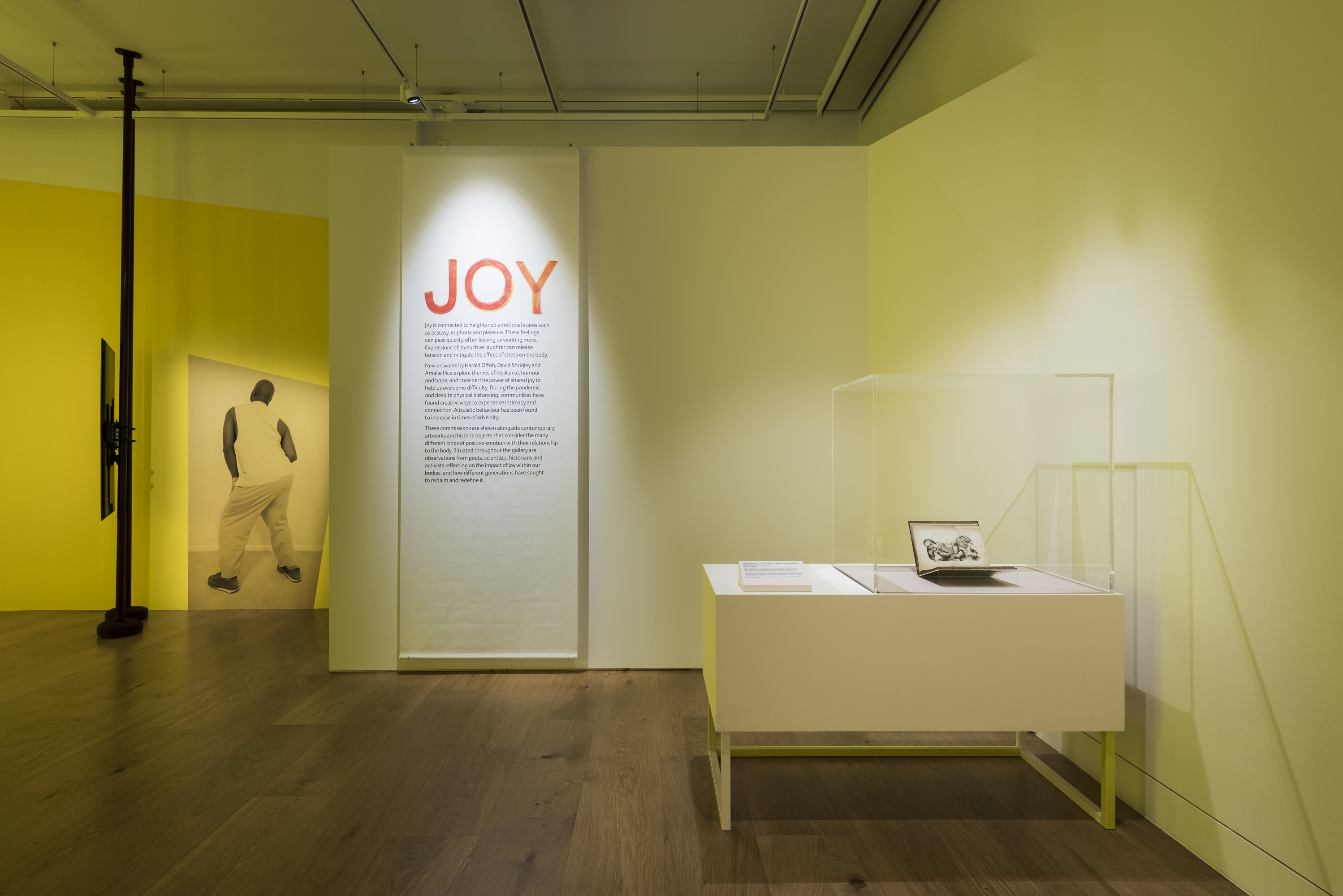 This exhibition shared a diversity of euphoric experiences and the effect of positive emotion on the body. Joy can bring catharsis, build resilience and bring people together. The dance floor promises a moment of euphoric release. Harold Offeh collaborated with the choreographer Vânia Gala on a series of online workshops bringing together different artists to explore the restorative qualities of dance. Originally proposed before the pandemic, the commission was reconfigured due to physical distancing guidelines. The dancers’ movements are produced in response to a series of instructions such as shaking, passing out and dancing in slow motion. The work considers the complex relationship between societal trauma and public manifestations of dance. These can be redemptive but can also hint at something darker. For the commission, Offeh researched the history of medieval dancing manias. While the causes of the manias are unclear, these eruptions of spontaneous dancing in the street were views as a either mass hysteria or a form of spiritual possession.