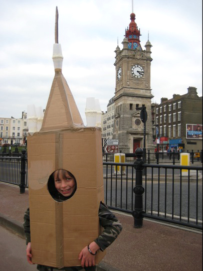 Inspired by William Van Allen's costume of his Crysler Building for the Beaux Arts Ball in New York 1931, Harold Offeh invited participants to make and then dress-up as their favourite buildings from Margate, before parading along the Seafront and taking part in an exhibition at the Substation.