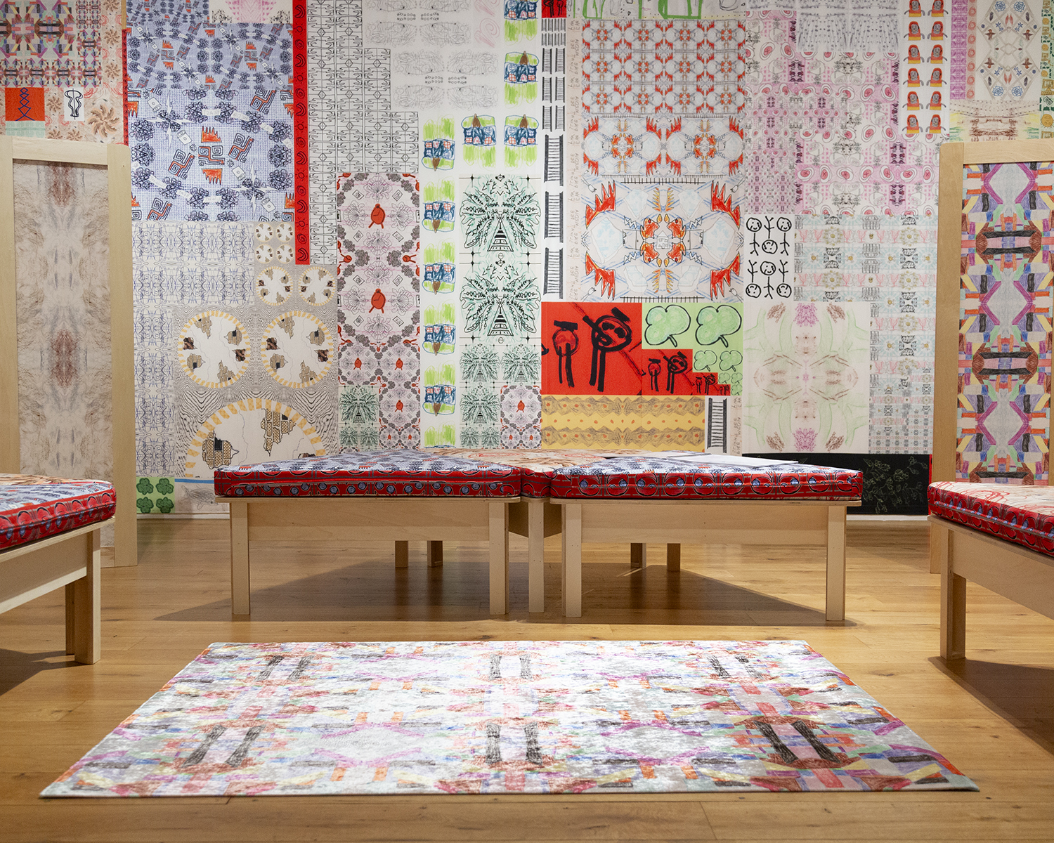 The Lounge was a large-scale, mixed media artwork by artist Harold Offeh and local community groups which explores the meaning of ‘home’, exhibited at the Lightbox Gallery in Woking, UK. Harold Offeh created the exhibition with students from The Orpheus Centre, young people from Amber and volunteers from Lightbox Gallery and Clandon Park. The installation occupies the whole gallery and will play host to a series of events exploring its theme.