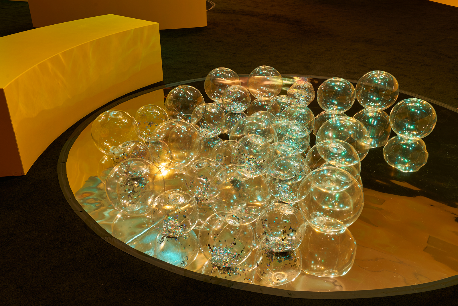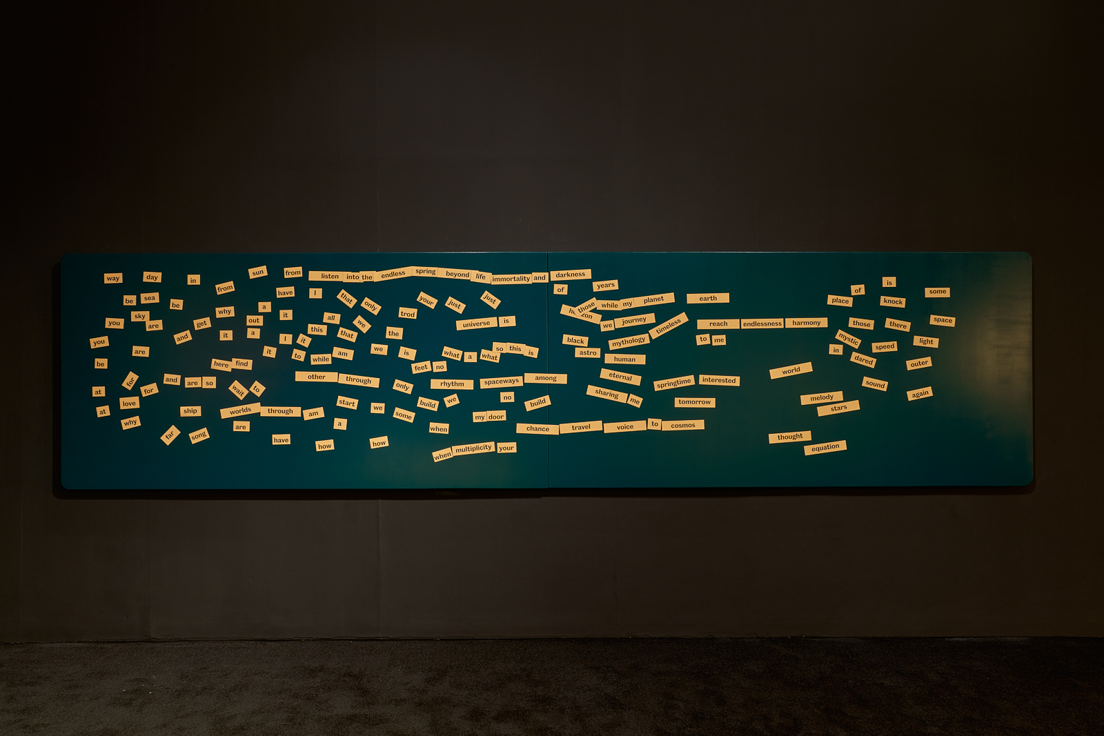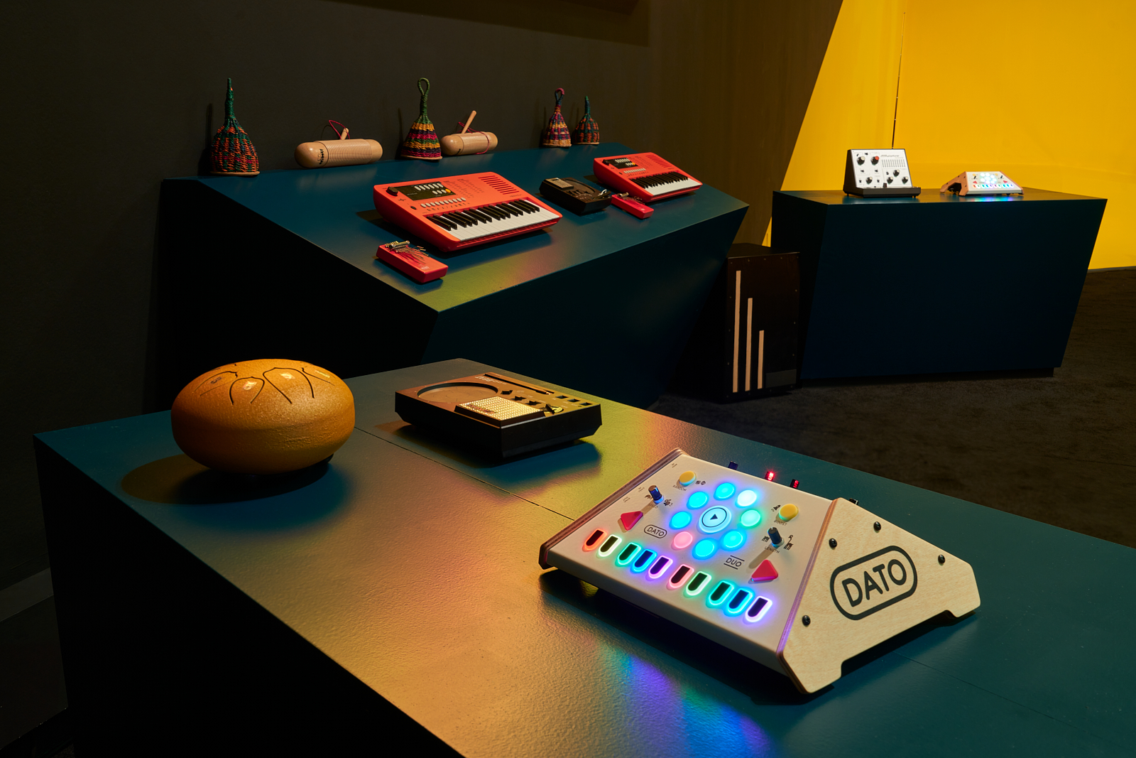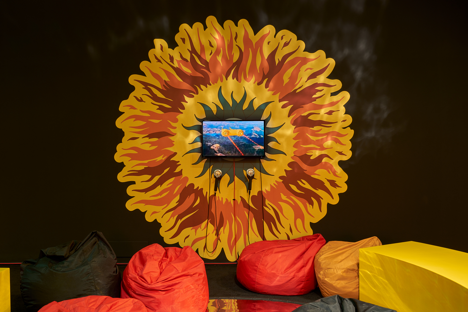 You are invited to play and interact with activities and materials inspired by sci-fi, possible futures, and imagined utopian places. Different zones explore different sensory experiences. Experiment with weight and mass in the habitat zone, identity and performance on the yellow stage, make patterns with sound, and prophecies and predictions for the future with text.
