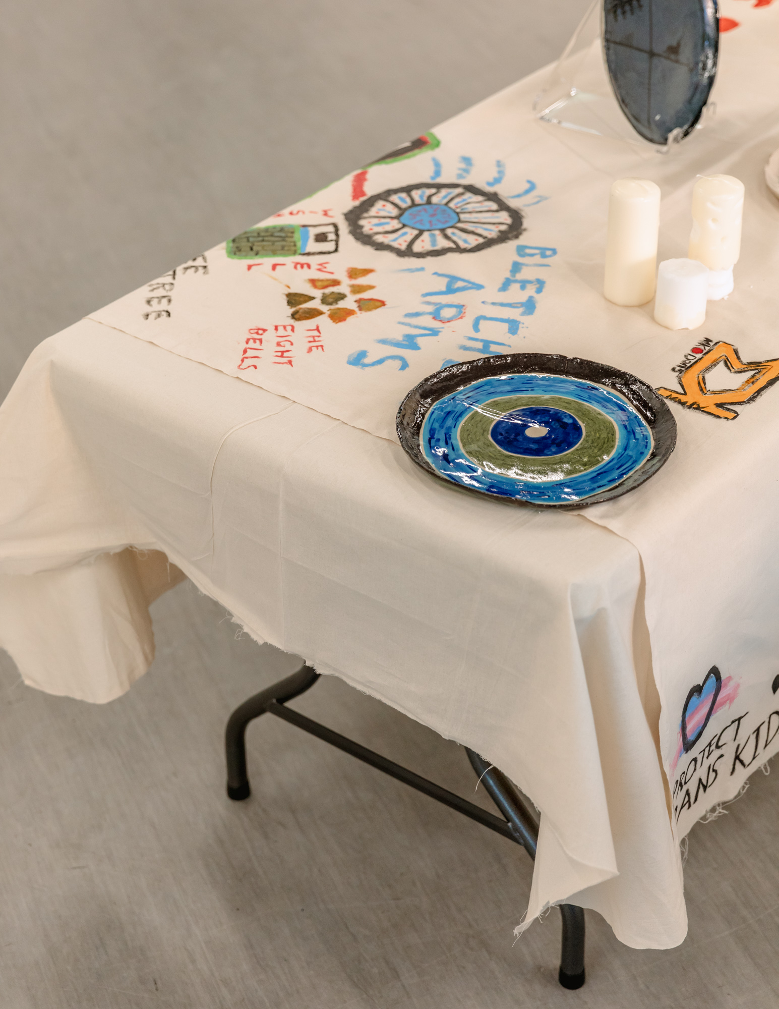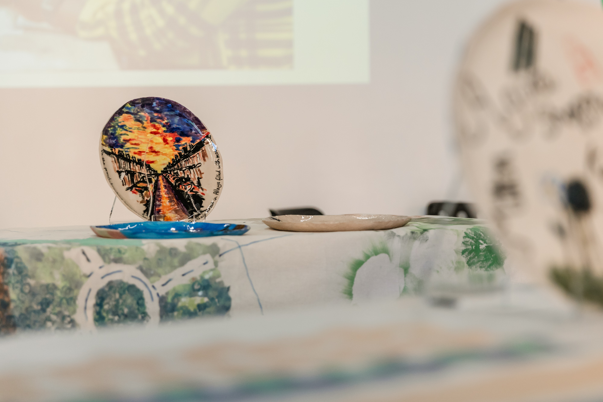 In April, Offeh returned to Milton Keynes. This time, the artist worked with the same groups to create a collective map of Milton Keynes formed from individually-made tablecloths, candles and plates – all sculpted or decorated to reflect the stories, places and histories that had been revealed to him. This unconventional map celebrates the fact that a place is not navigated by roads and paths alone, but also by the individual and collective memories and experiences of those who live there, as well as its curious visitors.